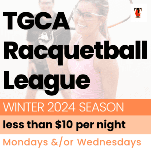 The TGCA racquetball league has been going strong for decades and there’s always room for more players! This is a mixed league and open to any level of skill. Our league includes divisions for: beginner, intermediate, advanced and elite.